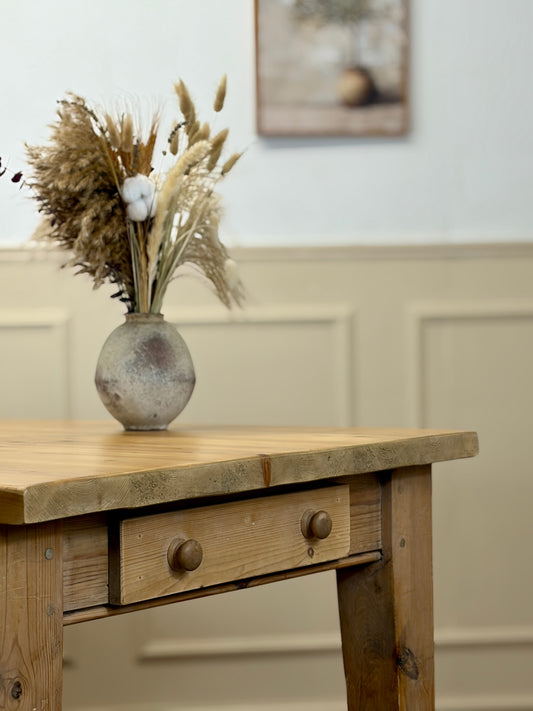 Rustic Reclaimed Pine Farmhouse Kitchen Table (6 Seater) with Drawer