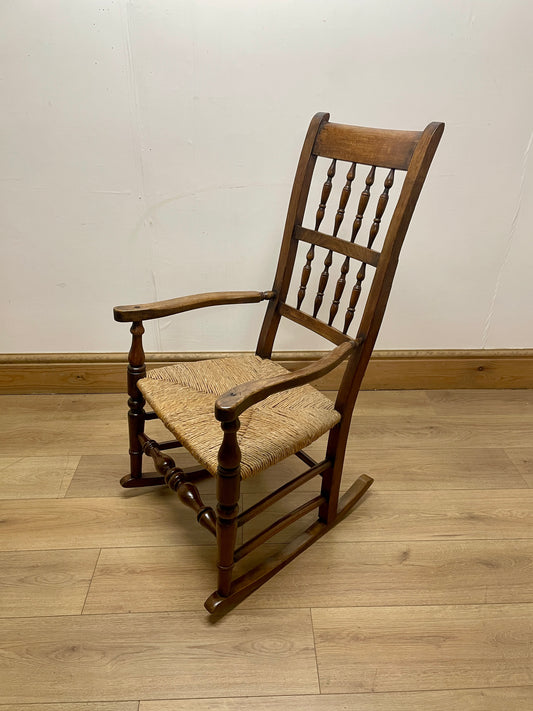 Antique Rush Seated Rocking Chair – Traditional Wooden Rocker