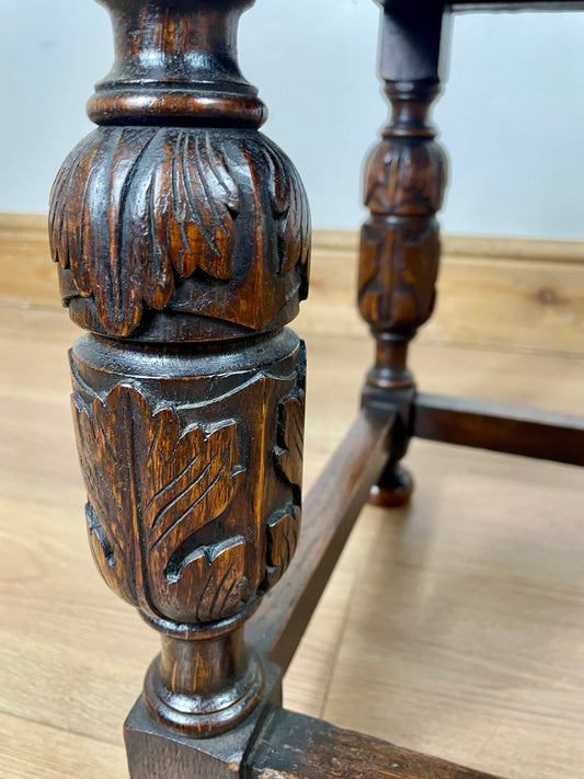 Sold outAntique Oak Brown Leather Footstool